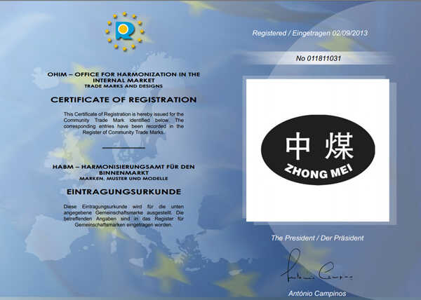 從品牌創立至今三十年間,中煤集團一直以打造令國人自豪的礦業機械設備為使命,堅持自主研發,走立足本土,全球化的品牌發展道路。歐盟商標注冊的成功不僅是中煤集團的勝利,更是將民族礦業設備成功推向國際的偉大勝利。