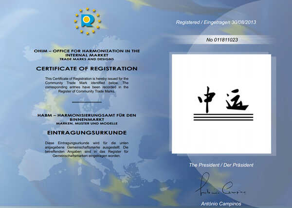 為進一步擴大國際市場,山東中運物流有限責任公司展開在歐盟申請注冊“中運”商標的工作,歐盟商標體制是歐盟會議通過的一種在歐盟28個國家使用的商標體制。2013年9月,中運物流商標成功的在歐盟完成注冊!就此敲開了中運物流在歐盟市場的大門!